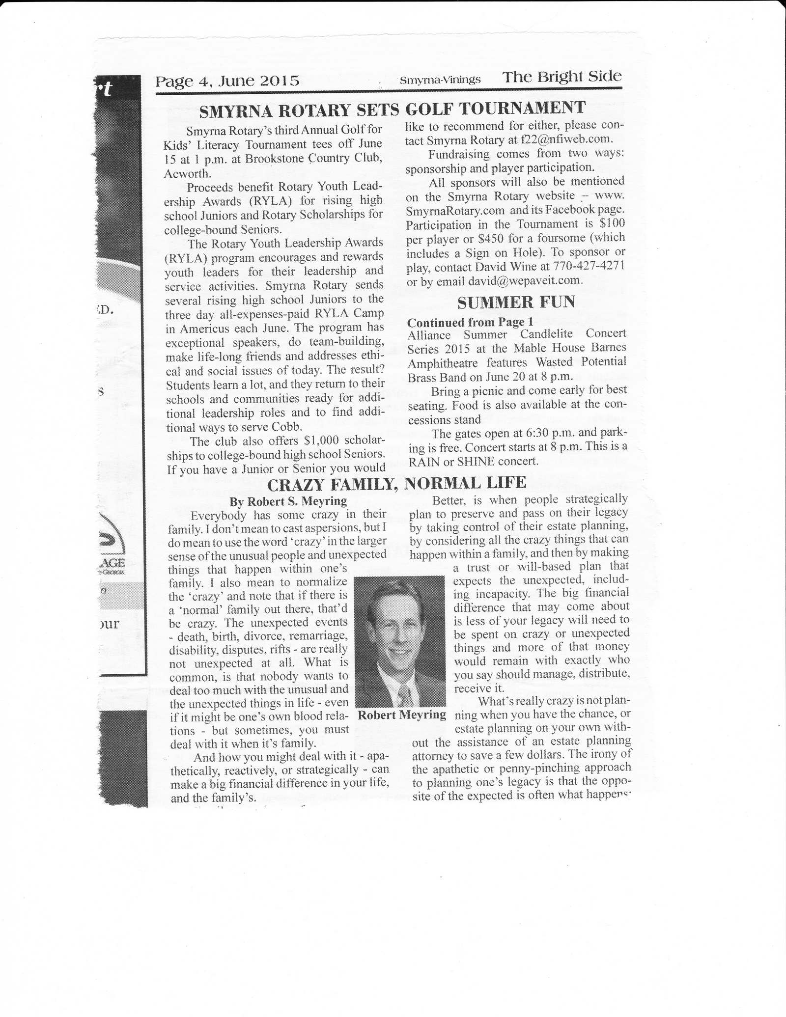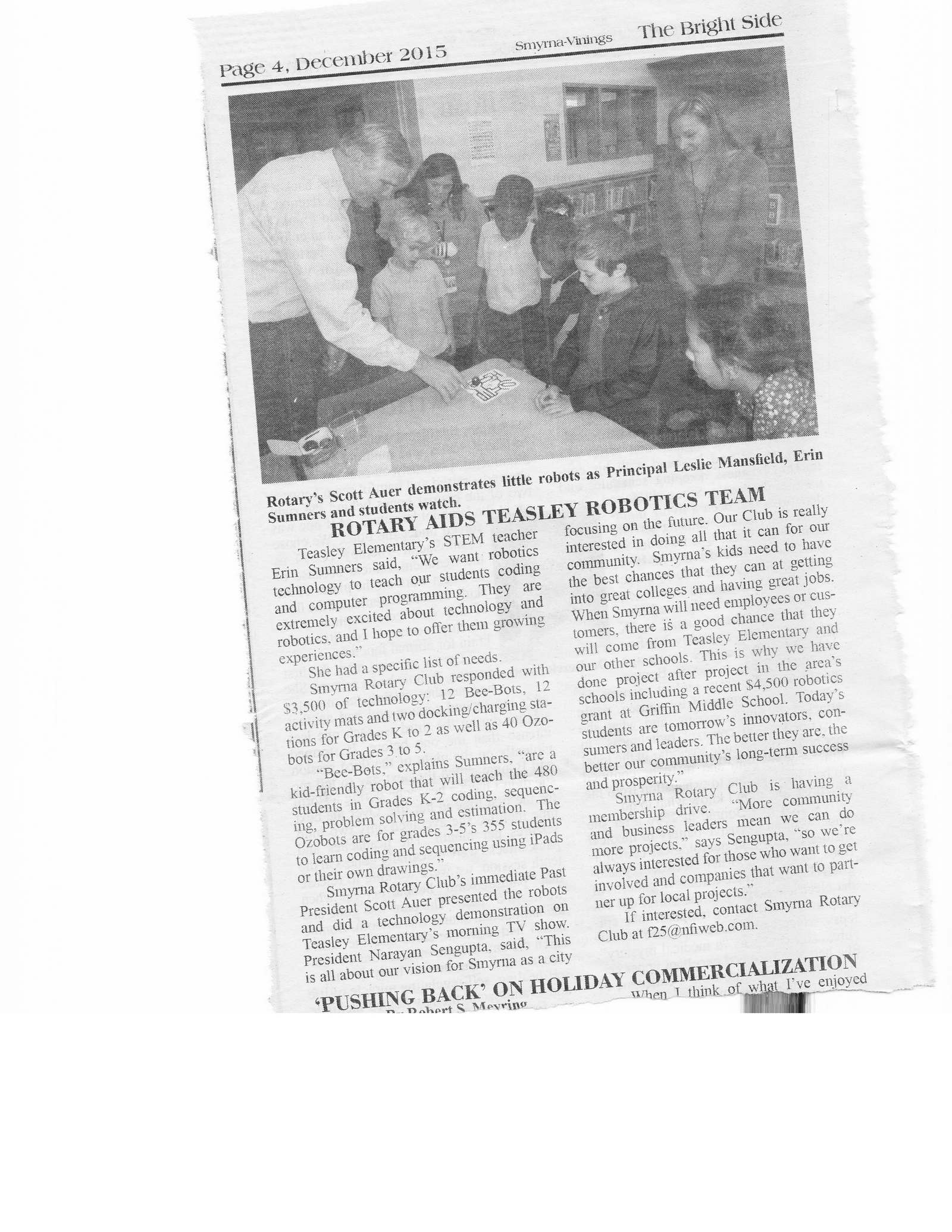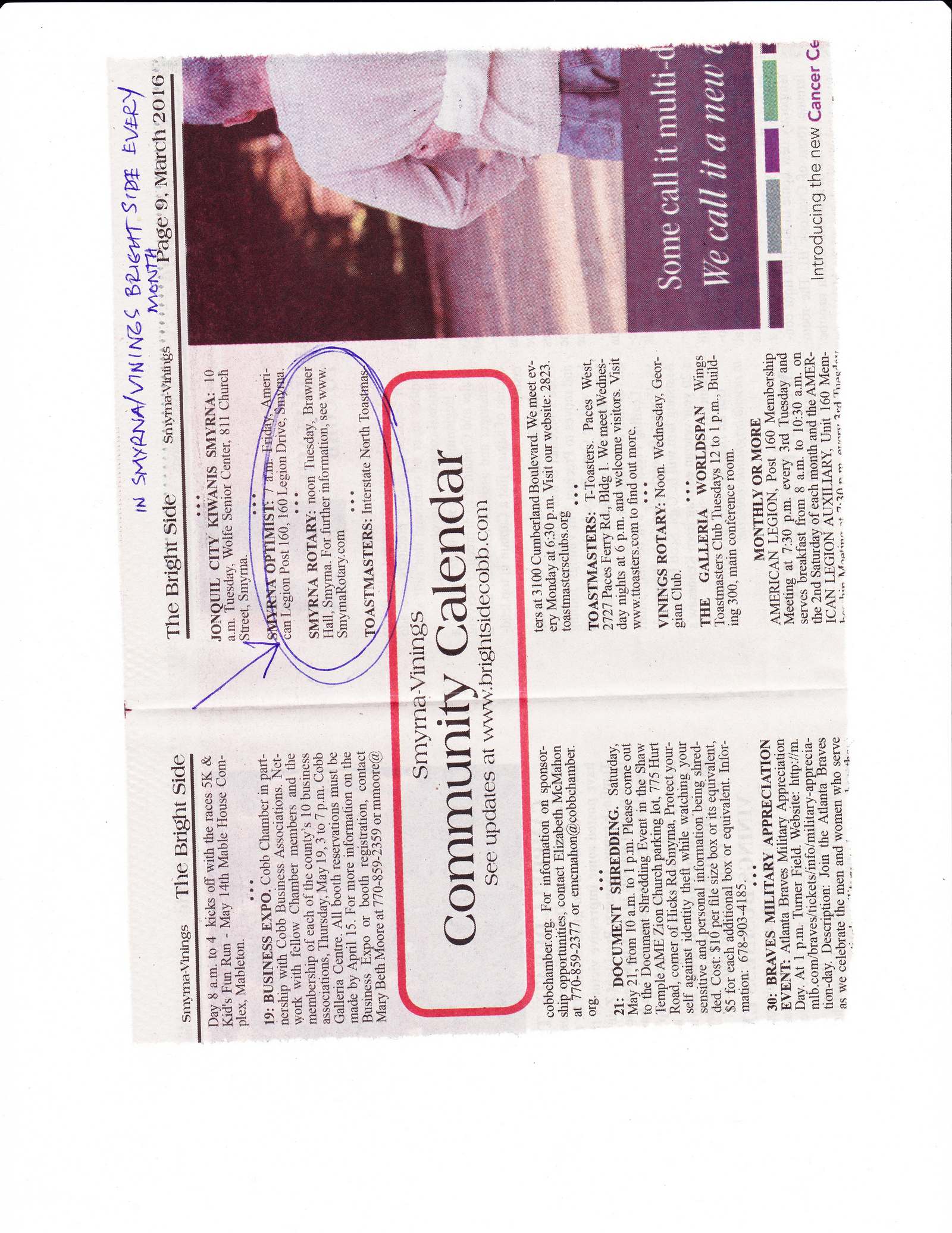 We will contact publications such as the Smyrna Vinings Bright Side and the Marietta Daily Journal and the Smyrna Patch in order to get exposure for the Club’s activities.
