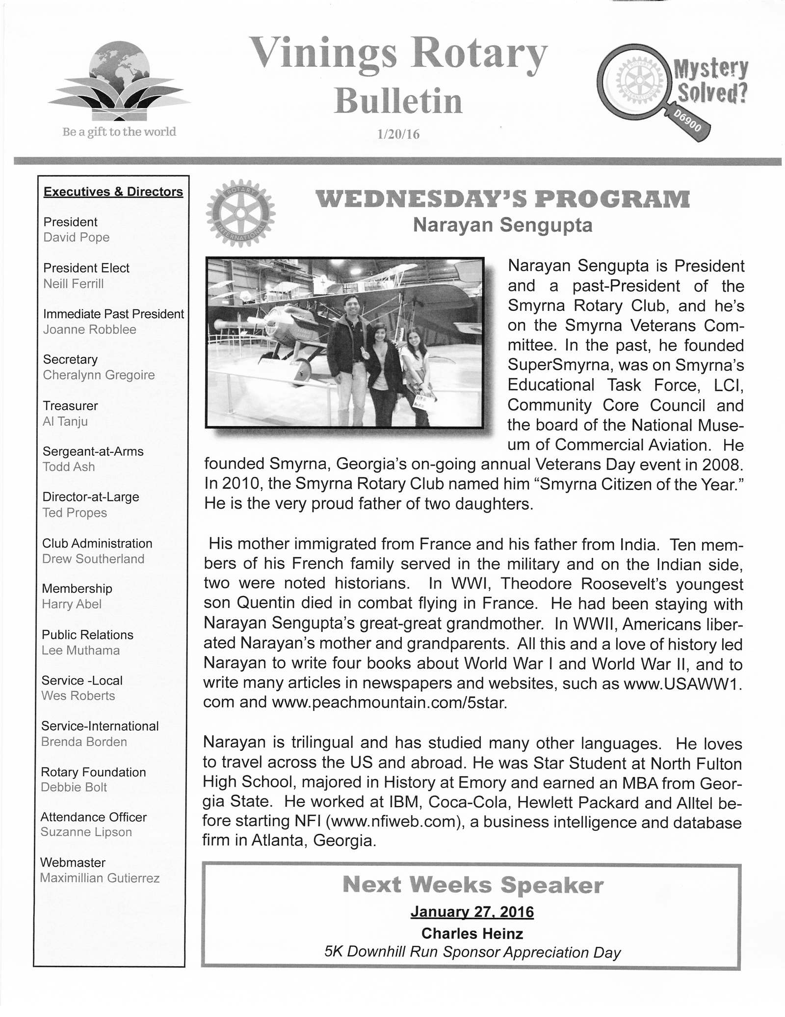 Club President Narayan Sengupta will become a contributor to the Smyrna Patch, which will also help us get articles out to the public.