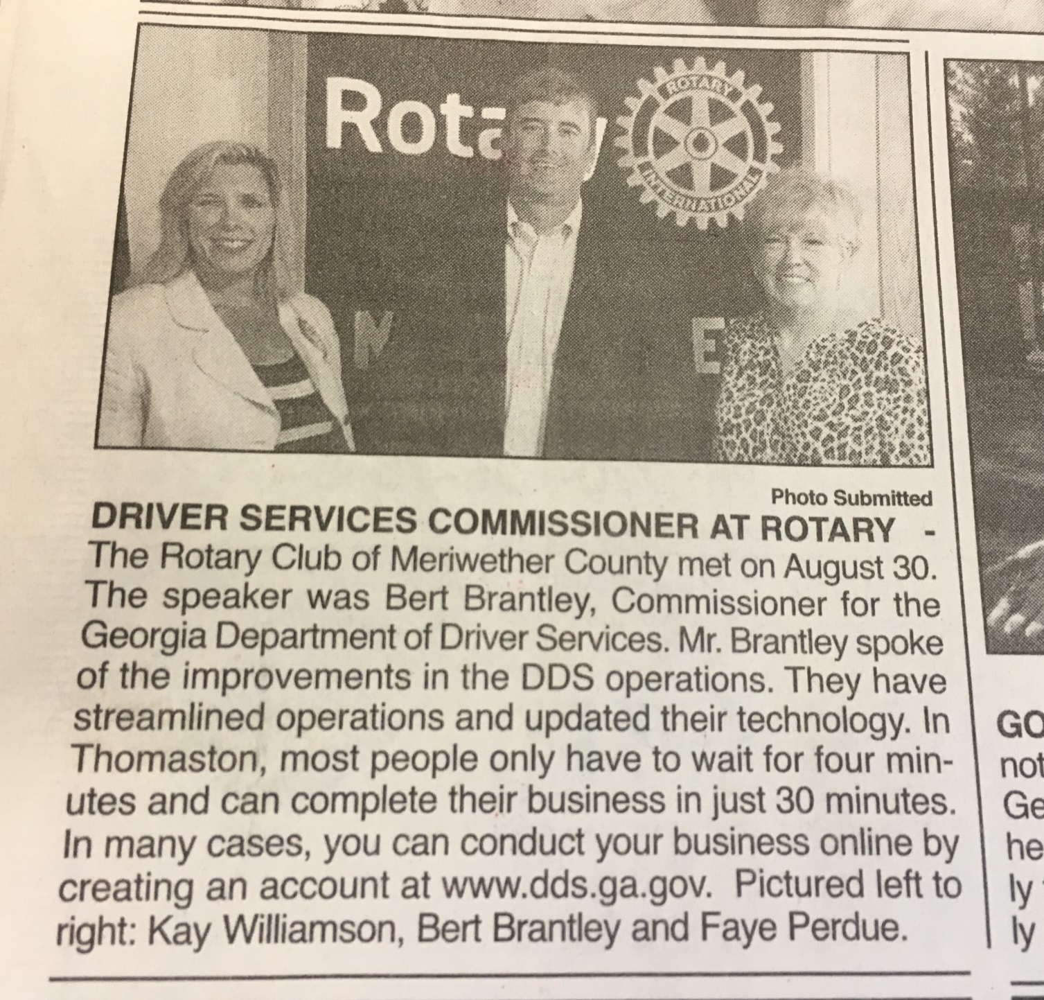 Meriwether Co Rotary Club promotes Rotary throughout the County and beyond by placing articles in the local weekly Meriwether Co Newspapers: (The Star Mercury and the Vindicator.)