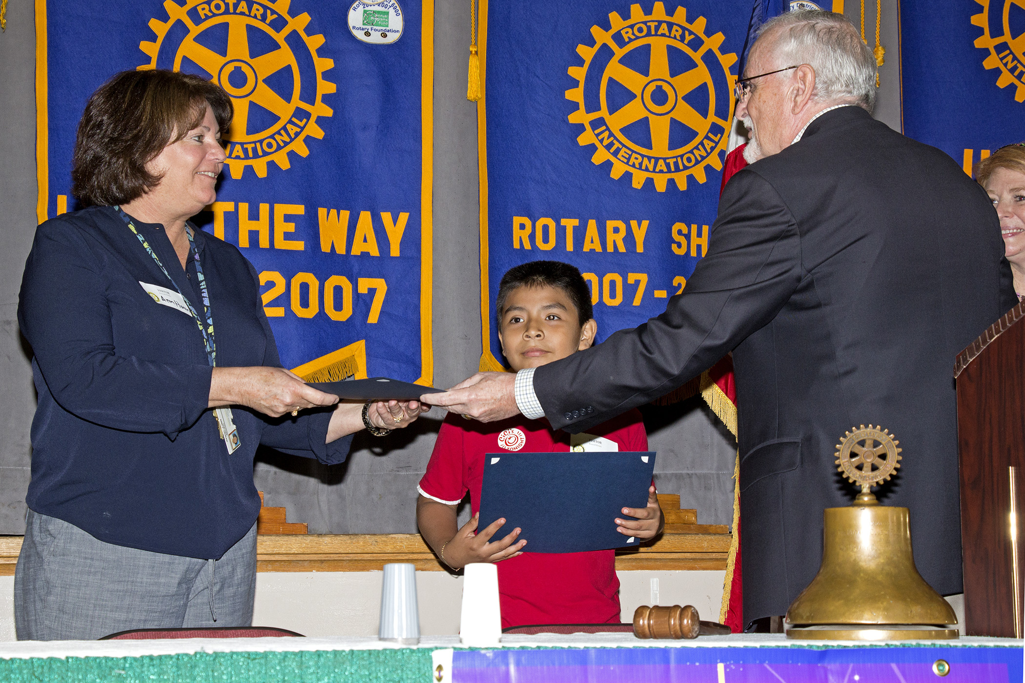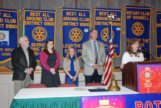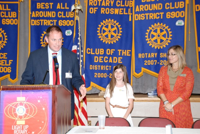 Each month during the school year, Roswell Rotary recognizes a student and teacher in the local community schools who demonstrates leadership and outstanding academic achievements. Each student and teacher is presented to the club at a regular meeting and is provided with a certificate of achievement. Additionally the club awards a Visa gift cards and a gift certificate to Mathnasium for each student and teacher.