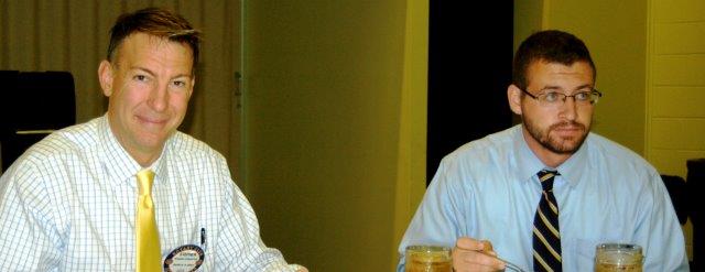 Steve Kilpatrick introduces a potential new member to the Northlake Rotary Club.jpg
