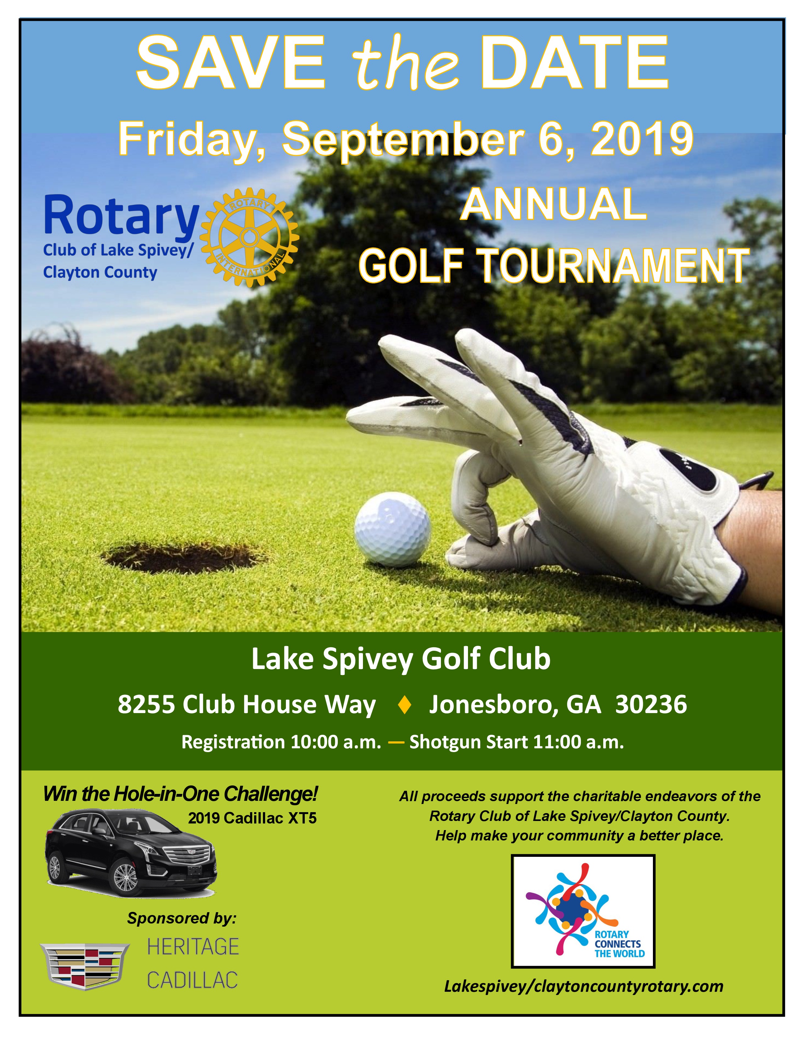 This year the annual golf tournament sponsored by the Rotary Club of Lake Spivey/Clayton County is scheduled for Friday, September 6. The location will be The Lake Spivey Golf Club, 8255 Clubhouse Way, Jonesboro, GA 30236. On site registration begins at 9:30 am with a Shotgun Start scheduled for 11:00 am. The charge for a team is $380. Individual players also are encouraged at $100 each and will be organized into teams. Two Hole-in-One opportunities are included in the tournament. Related activities that also are being planned include numerous valuable "door" prizes and a raffle for a Big Green Egg. Raffle tickets are $5 each. Hole sponsor fees are $125. Other sponsorships also are available. Call Aileen Conteh, tournament Chair, at 240-441-4286 for additional information.